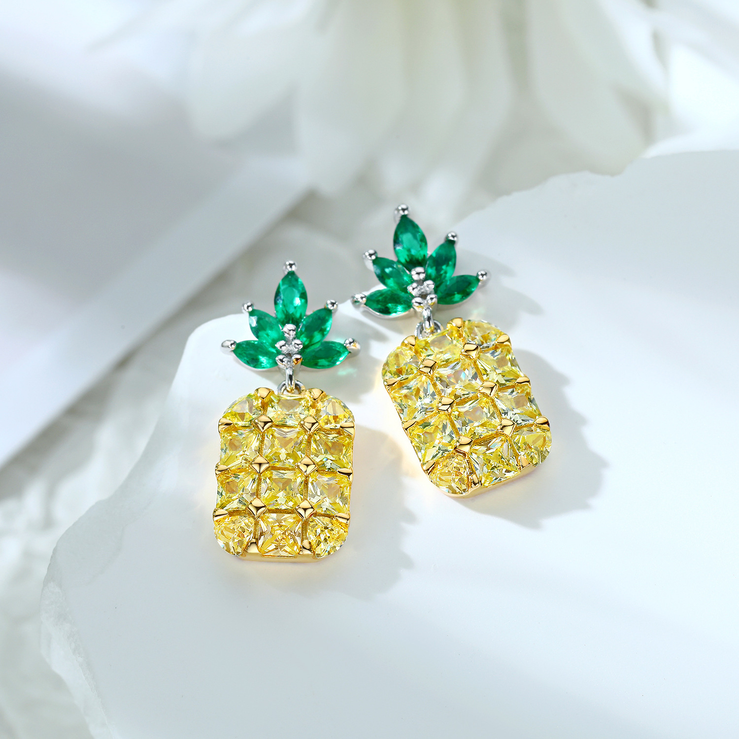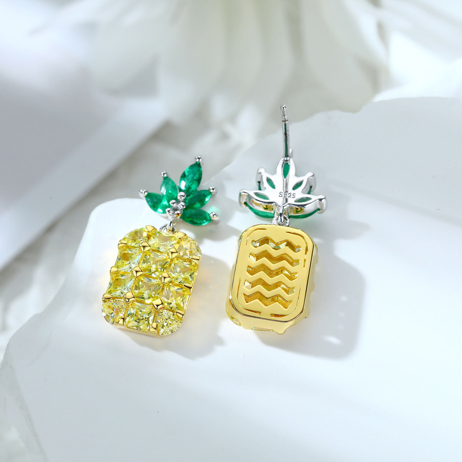 S925 Silver Zircon Pineapple Fruit Earrings for Women – Cute & Trendy Jewelry Gift