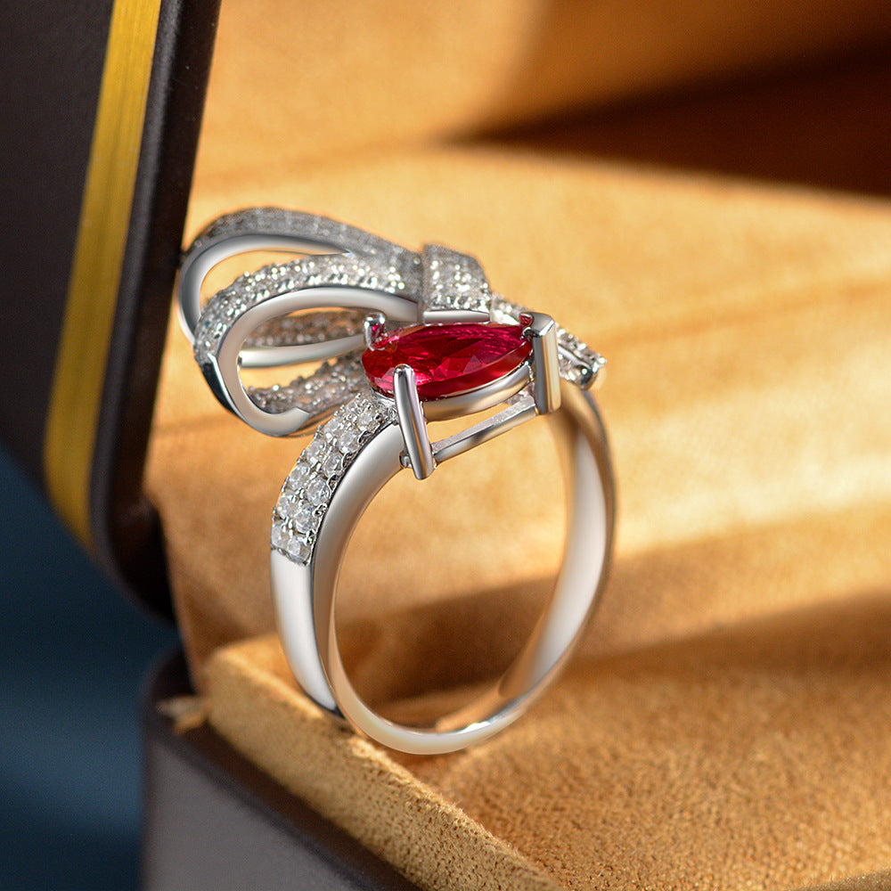S925 Sterling Silver 1ct Water Drop Ruby-Inspired Ring with High Carbon Diamonds