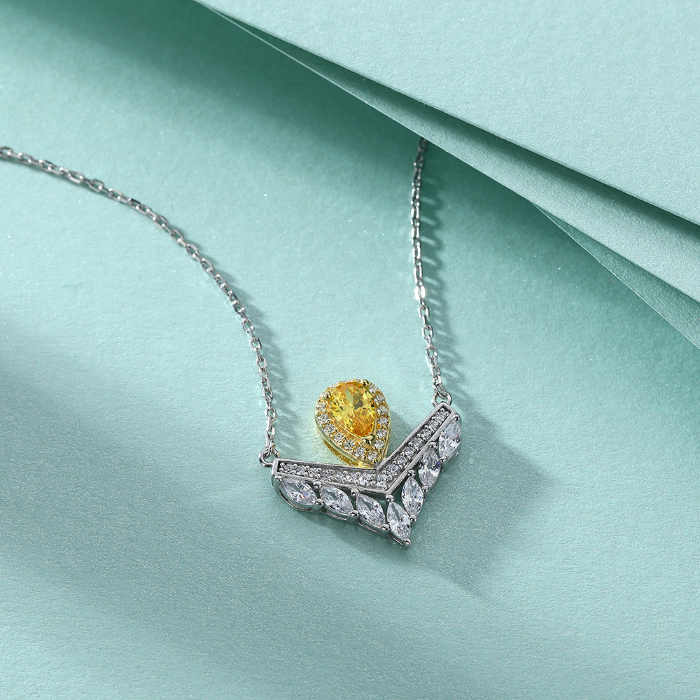S925 Silver V-Shaped Crown Zircon Pendant Necklace – Royal-Inspired Sparkling Statement Jewelry for Women