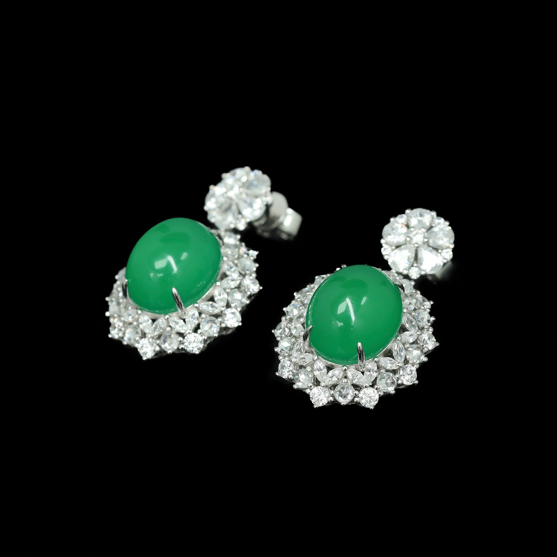 925 Silver Gold-Plated High Carbon Diamond & Natural Chalcedony Egg-Shaped Floral Earrings