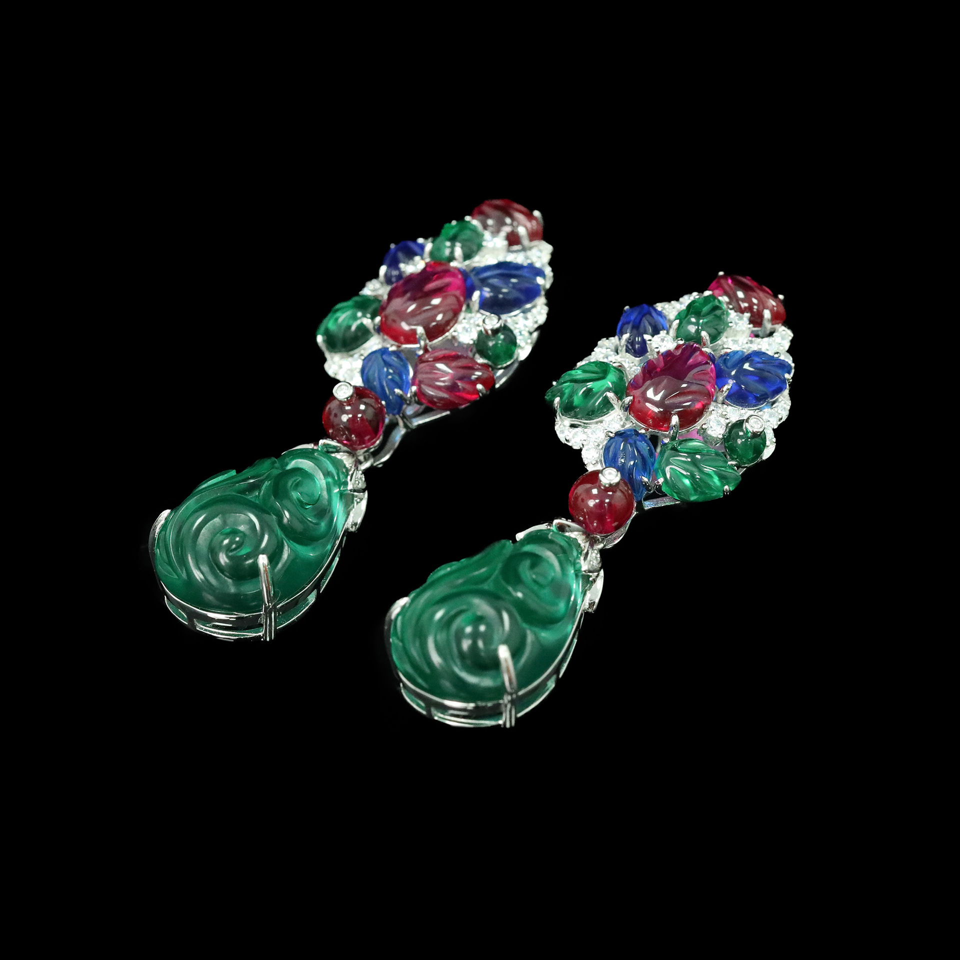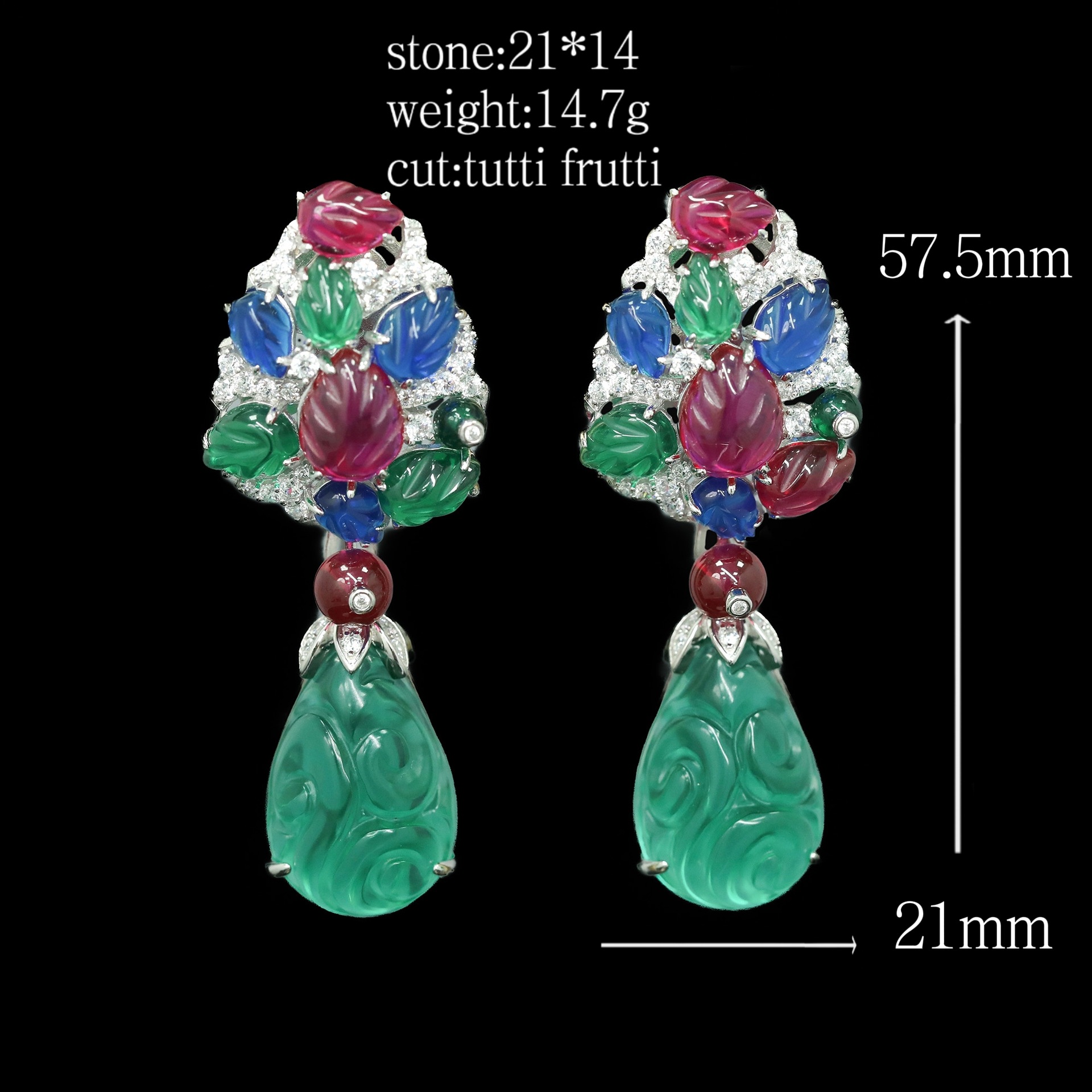 925 Silver Gold-Plated Fruit Bag Earrings with Emerald Main Stone & High-Carbon Diamonds – Unique & Luxurious Design
