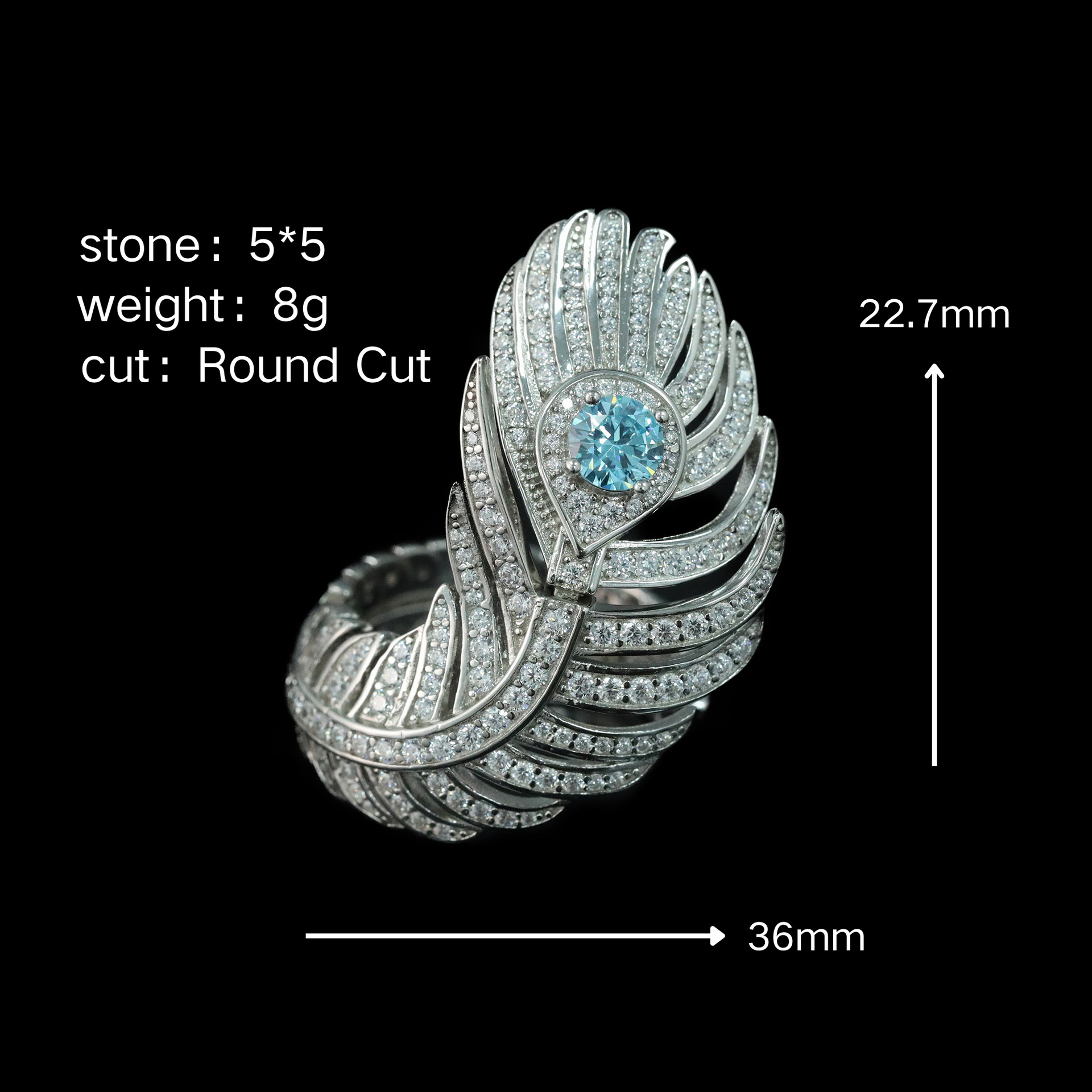 925 Silver Gold-Plated High Carbon Diamond Blue Pine Fenda Color Ring – Elegant & Unique Design
