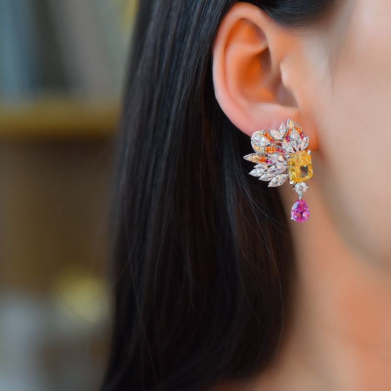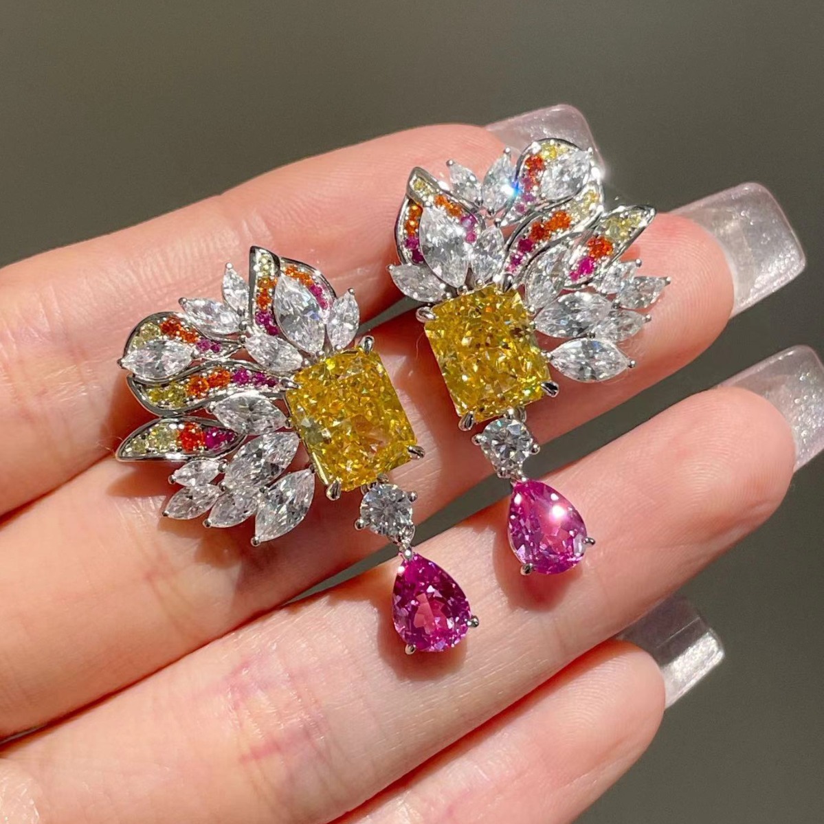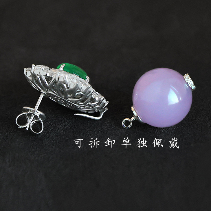 925 Silver Gold-Plated High Carbon Diamond Natural Chalcedony Violet Earrings – Elegant & Timeless Jewelry