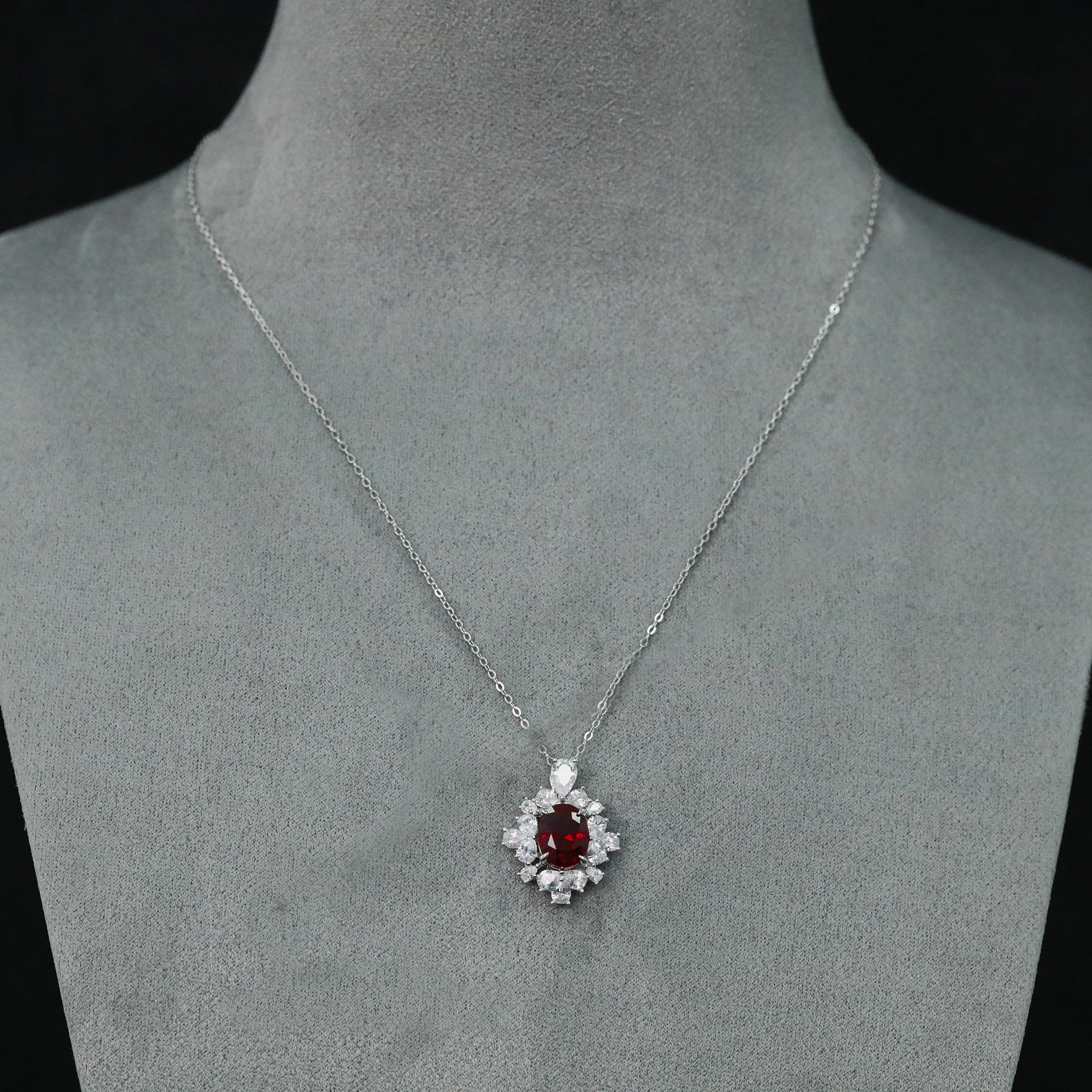 925 Silver Gold-Plated High Carbon Diamond Pigeon Blood Red 3-Carat Egg-Shaped Ruby Necklace – Luxurious & Stunning Design