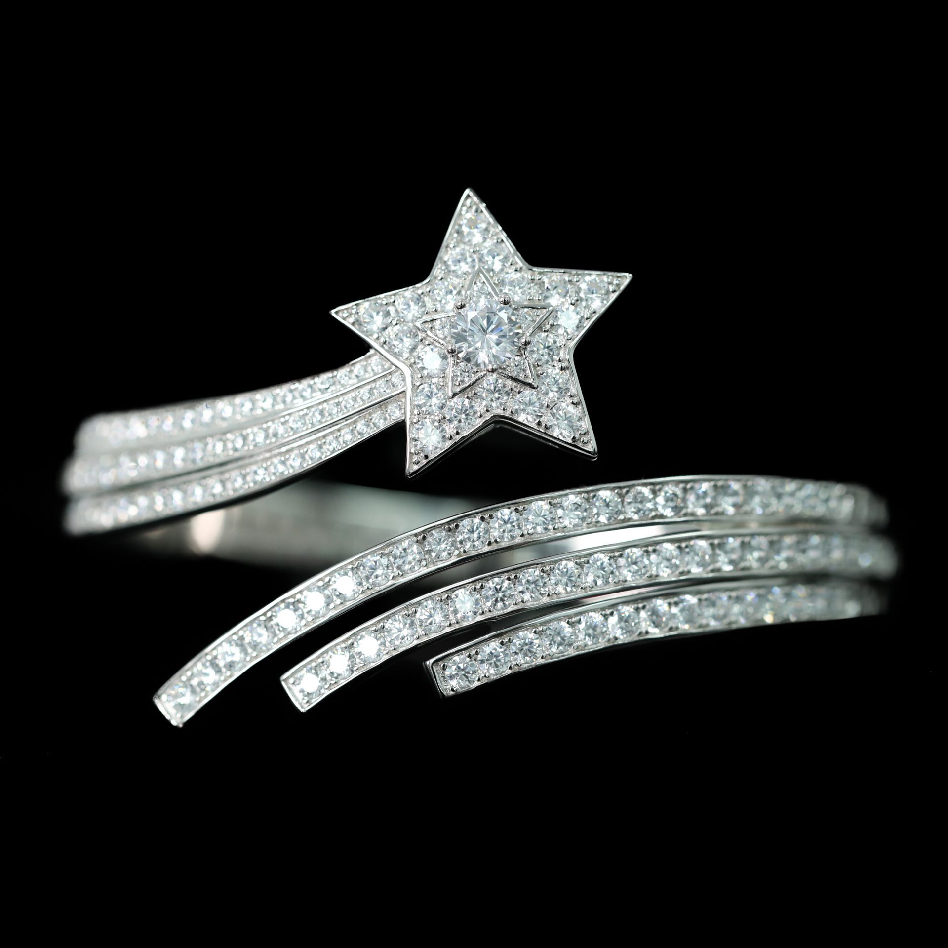 925 Silver Gold-Plated High Carbon Diamond Universe Star Series Floral Ring