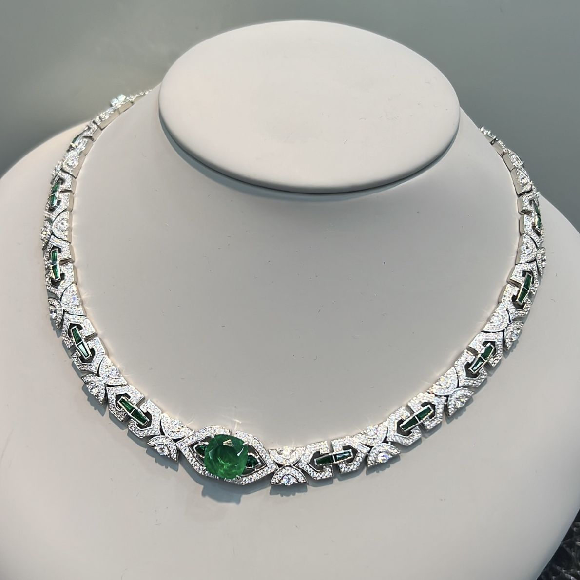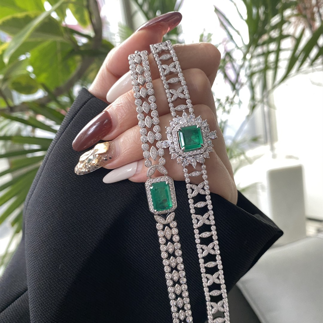 925 Silver Gold-Plated High Carbon Diamond Wood Green Inlaid Emerald Necklace
