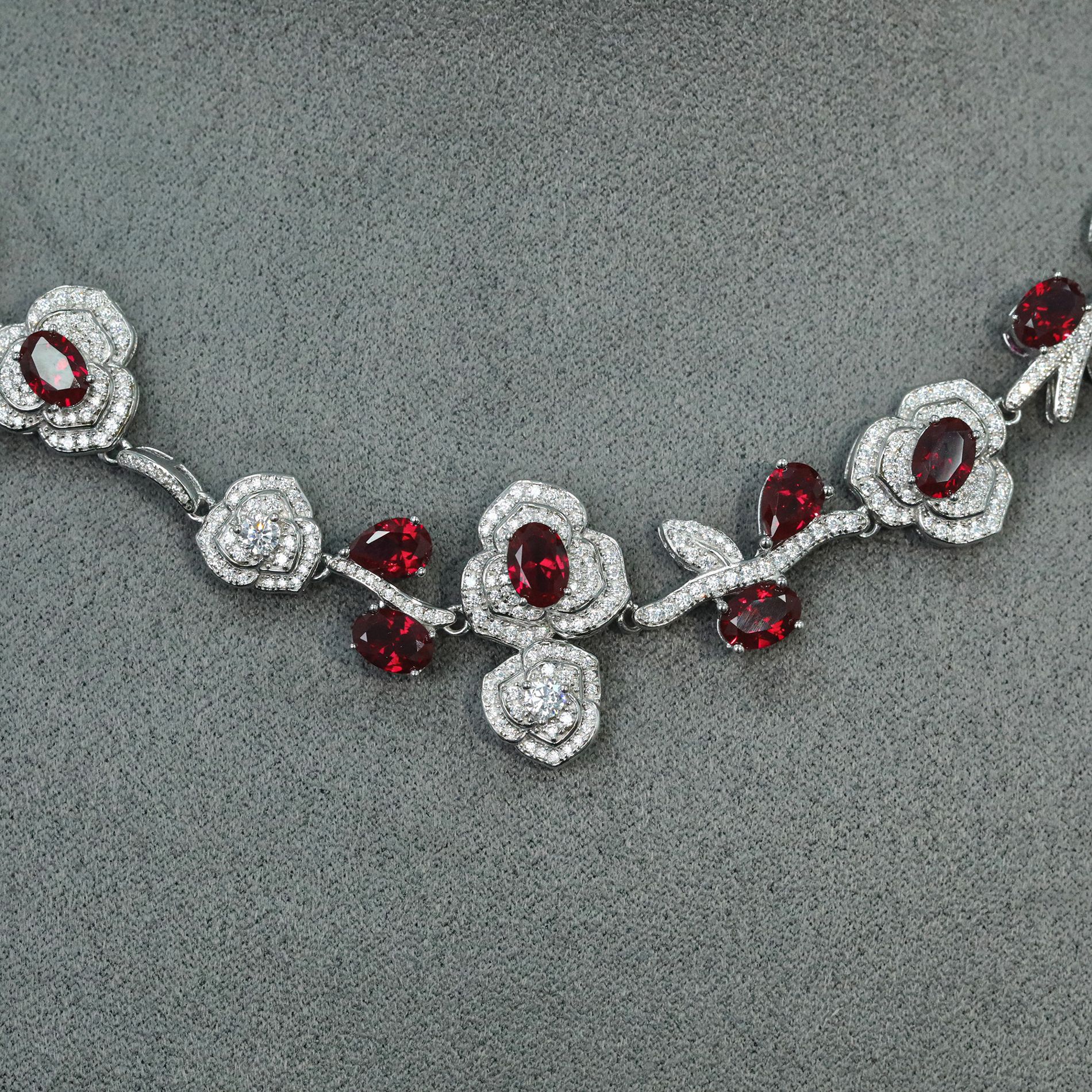 925 Silver Gold-Plated High Carbon Diamond Pigeon Blood Red Thorn Rose Necklace