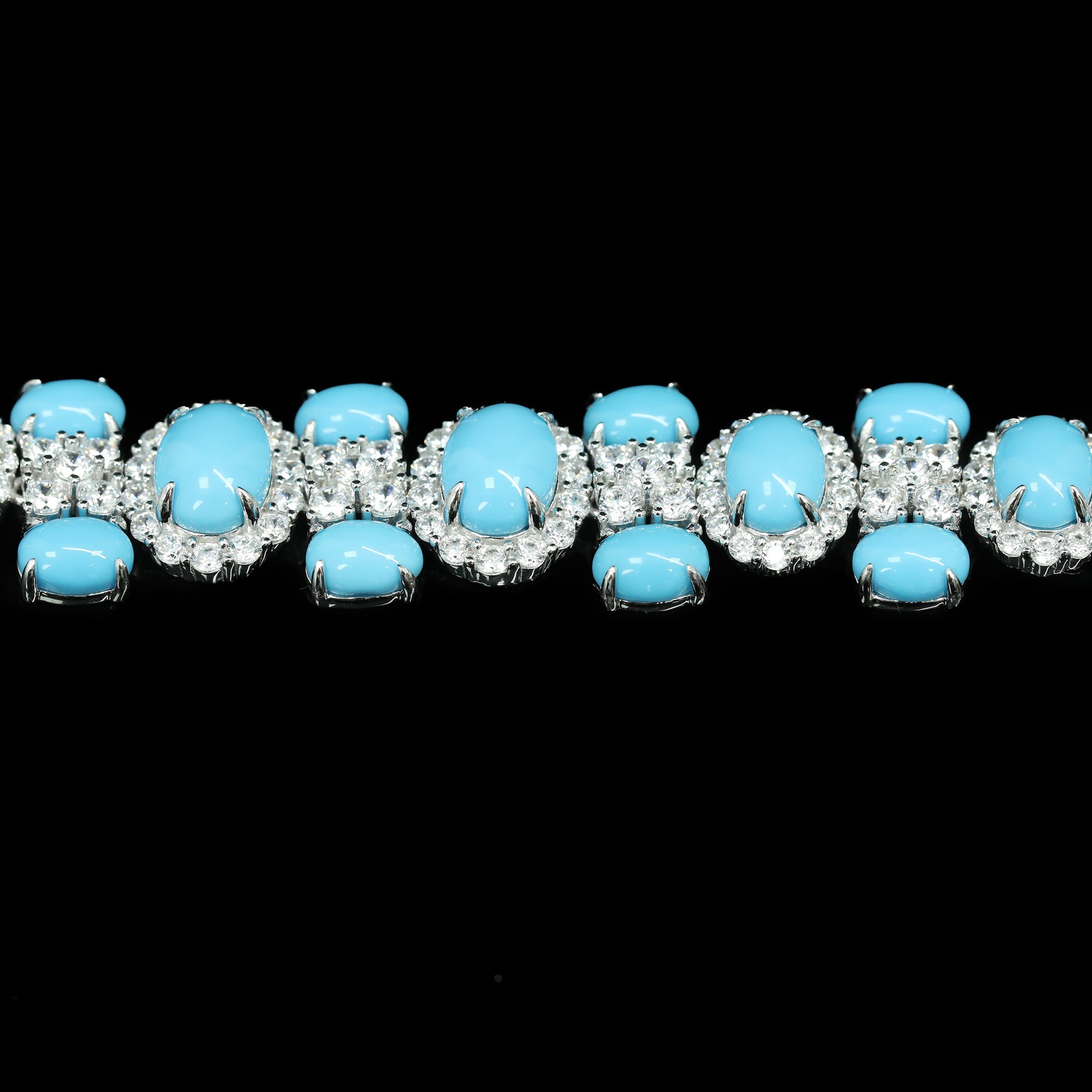 925 Silver Gold-Plated High Carbon Diamond Egg-Shaped Blue Pine Bracelet