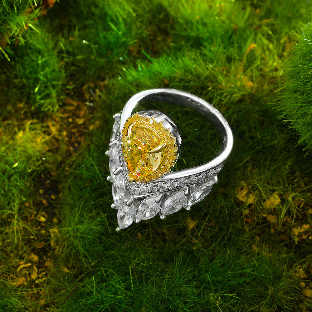 S925 Sterling Silver Crown Design Teardrop 4ct Diamond Luxury Ring