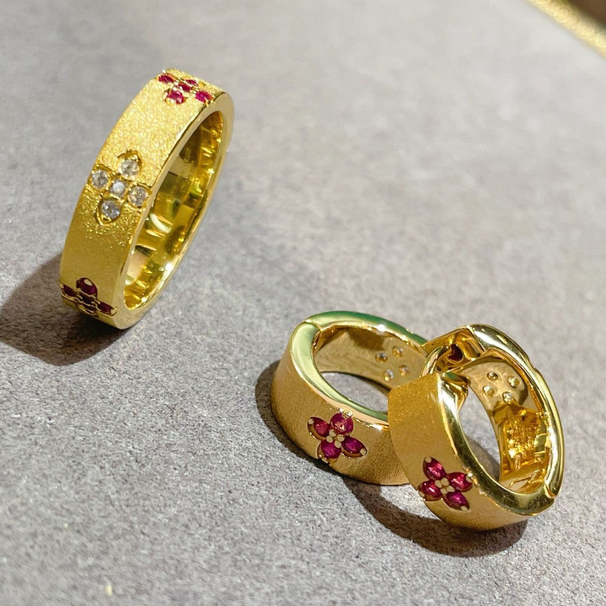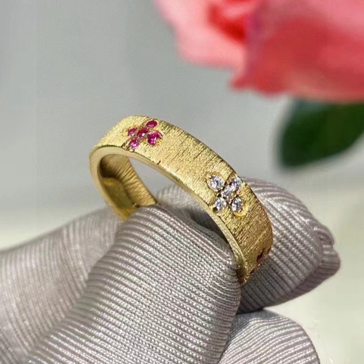 Women’s 925 Silver Gold-Plated Brushed Ruby Ring – Elegant & Timeless Design