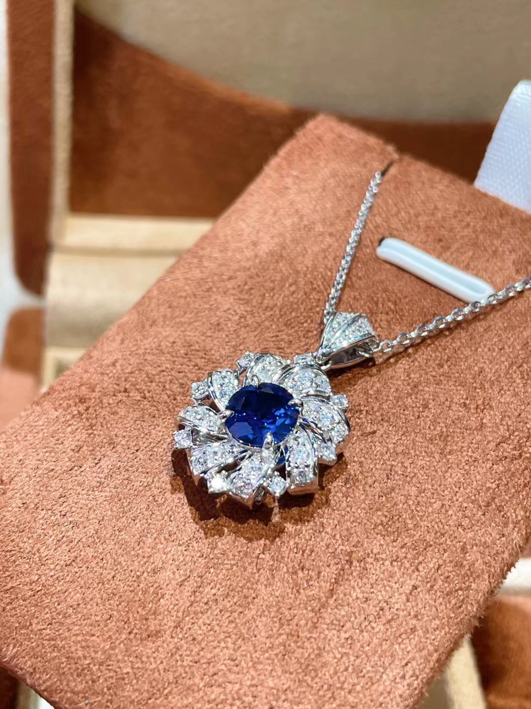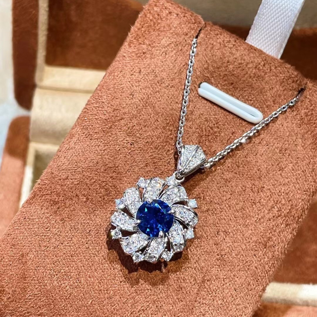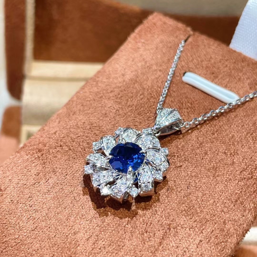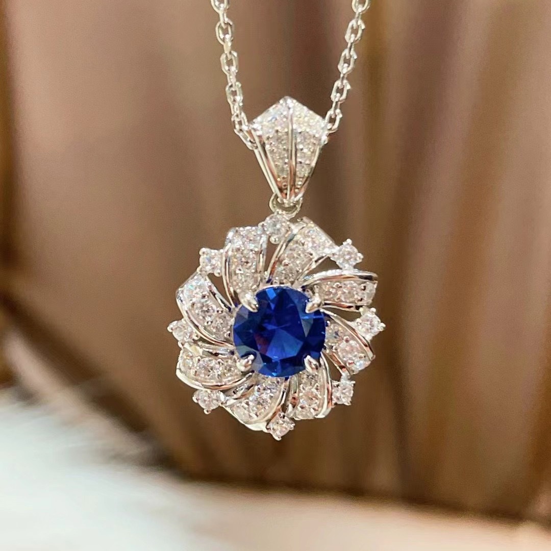 Women’s 925 Silver Light Luxury High Carbon Diamond & Royal Sapphire Necklace
