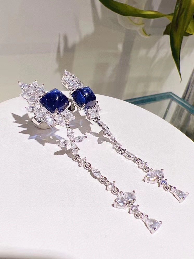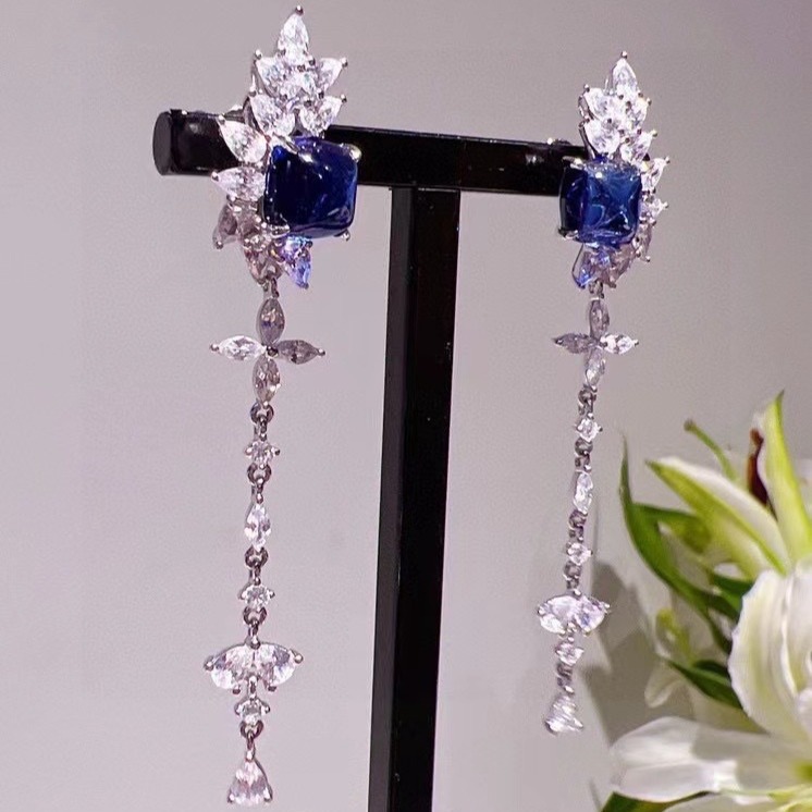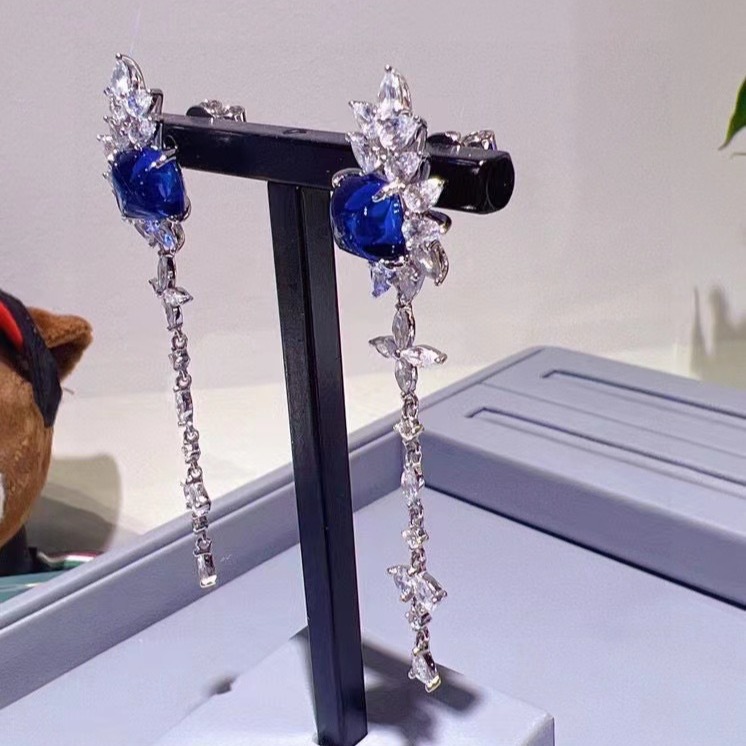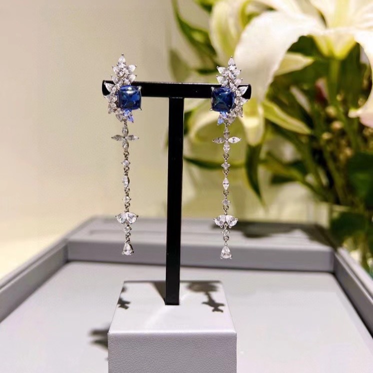 Women’s 925 Silver Gold-Plated High Carbon Diamond Blue Sugar Tower Earrings