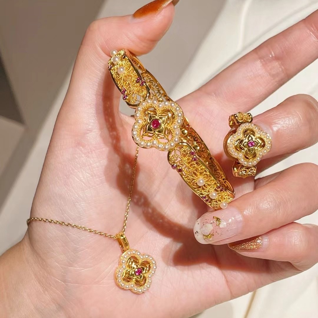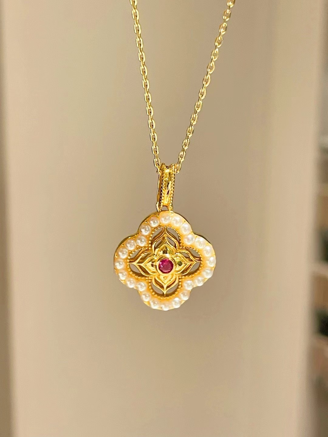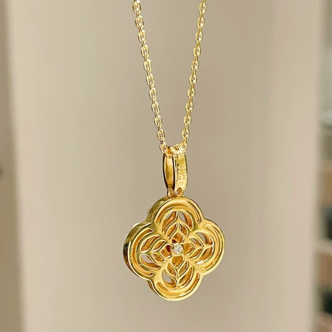Women’s 925 Silver Gold-Plated Medieval Filigree Four-Leaf Clover Pendant Necklace