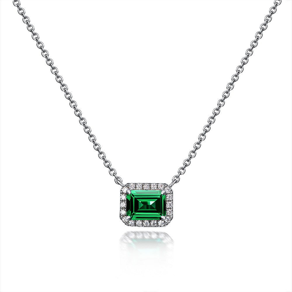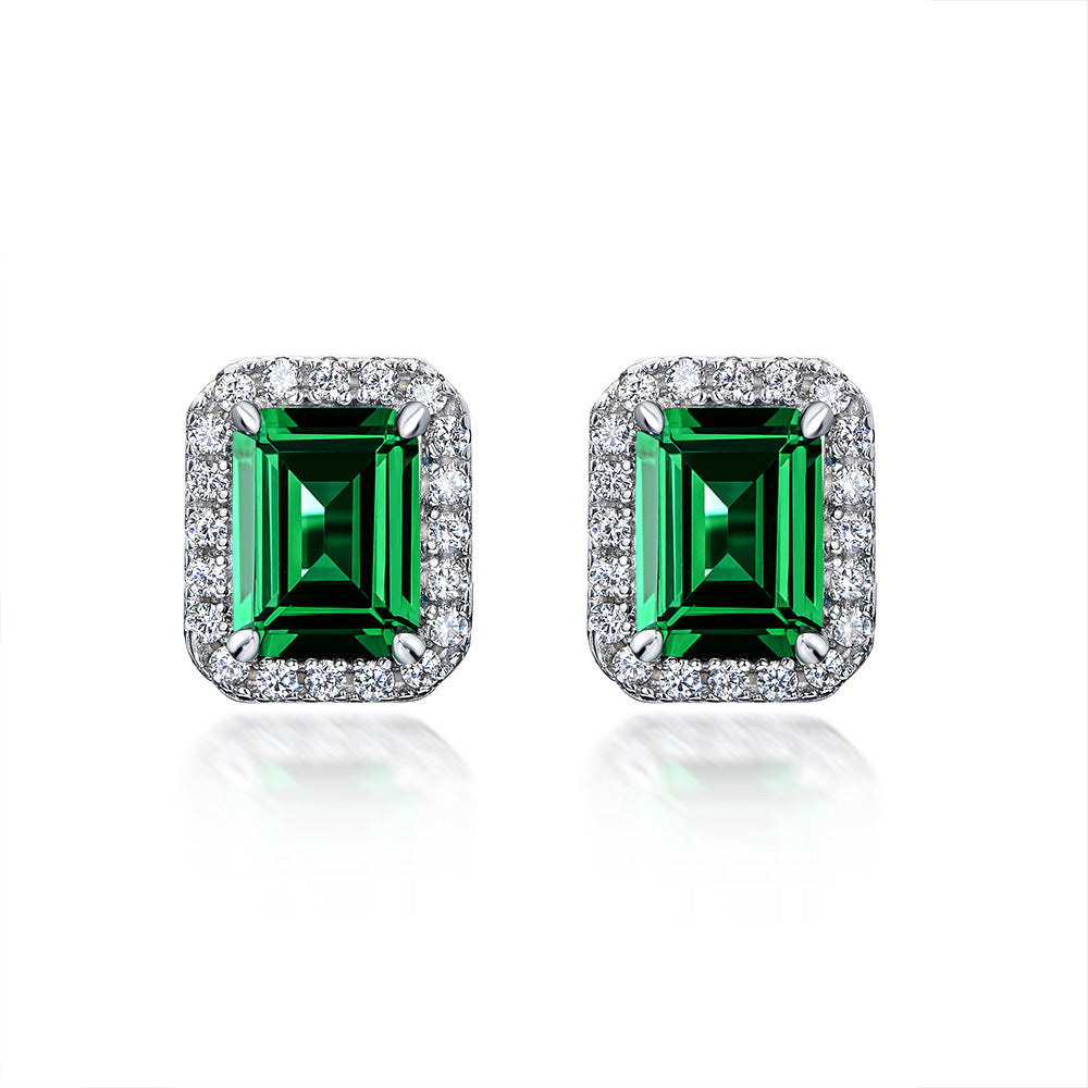925 sterling silver 2 carat cultured emerald necklace ring European and American light luxury four-piece set